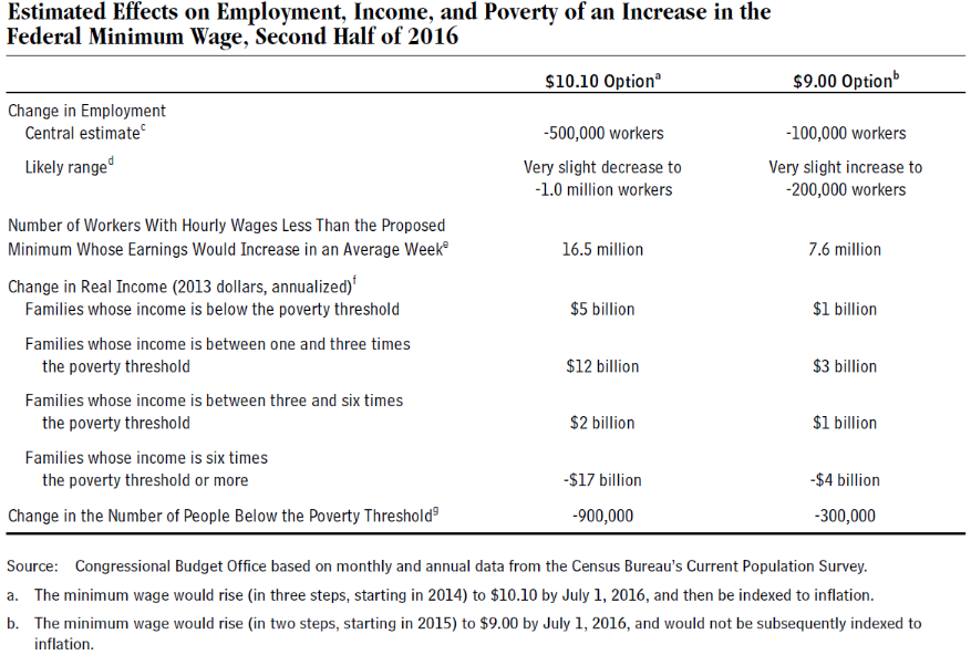 In July 2019, the Congressional Budget Office published the impact on proposed national $15/hour legislation. It noted that workers who retained full employment would see a modest improvement in take home pay offset by a small decrease in working conditions and non-pecuniary benefits. However, this benefit is offset by three primary factors; the reduction in hours worked, the reduction in total employment, and the increased cost of goods and services. Those factors result in a decrease of about $33 Billion in total income and nearly 1.7–3.7 million lost jobs in the first three years (the CBO also noted this figure increases over time).[86]