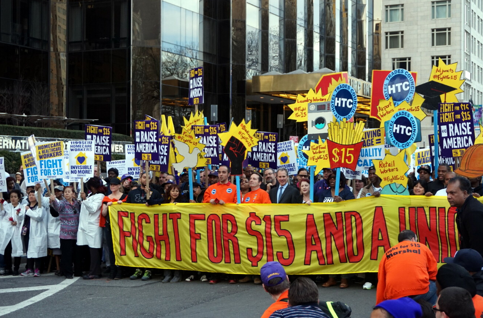 The minimum wage in the United States is especially political.[185] Politically, the Republican party has generally opposed increases to the minimum wage, while the progressive wing of the Democratic party, aligned with the Fight for 15 movement, has recently supported raising the federal minimum wage to $15 per hour. In 2021, the Congressional Budget Office released a report which estimated that incrementally raising the federal minimum wage to $15 an hour by 2025 would benefit 17 million workers, but would also reduce employment by 1.4 million people.