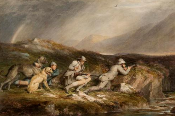 When the Napoleonic wars finished in 1815, the Highland industries were affected by the return to a peacetime economy. The price of black cattle fell, nearly halving between 1810 and the 1830s. Kelp prices had peaked in 1810, but reduced from £9 a ton in 1823 to £3 13s 4d a ton in 1828. Wool prices were also badly affected.[17] This worsened the financial problems of debt-encumbered landlords. Then, in 1846, potato blight arrived in the Highlands, wiping out the essential subsistence crop for the overcrowded crofting communities. As the famine struck, the government made clear to landlords that it was their responsibility to provide famine relief for their tenants. The result of the economic downturn had been that a large proportion of Highland estates were sold in the first half of the 19th century. T M Devine points out that in the region most affected by the potato famine, by 1846, 70 per cent of the landowners were new purchasers who had not owned Highland property before 1800. More landlords were obliged to sell due to the cost of famine relief. Those who were protected from the worst of the crisis were those with extensive rental income from sheep farms.[16] Government loans were made available for drainage works, road building and other improvements and many crofters became temporary migrants – taking work in the Lowlands. When the potato famine ceased in 1856, this established a pattern of more extensive working away from the Highlands.[16]