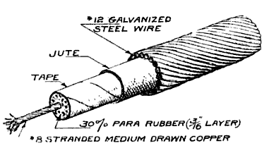 The Ambrose leader cable was an armored cable with a single internal conductor (see picture) that acted like a long radio antenna laid on the channel floor. It originated at Fort Lafayette (near the present day Verrazano-Narrows Bridge), then extended 16 miles down the Ambrose Channel to the vicinity of Lightship Ambrose offshore.[3] It was powered by a generator at Fort Lafayette that produced 500 Hz (cycles per second) current at 400 volts, resulting in an alternating electromagnetic field along the length of the cable that could be detected to approximately a thousand yards away.[4] The current was mechanically keyed to send the word "NAVY" in Morse Code.[5]