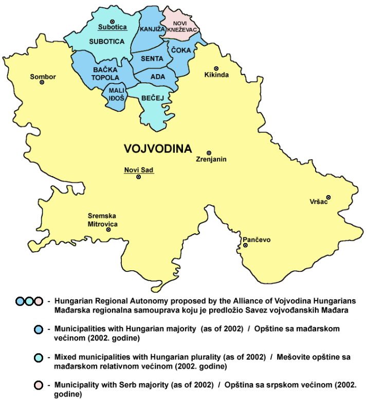 These parties are advocating the establishment of the territorial autonomy for Hungarians in the northern part of Vojvodina, which would include the municipalities with Hungarian majority (See Hungarian Regional Autonomy for details).