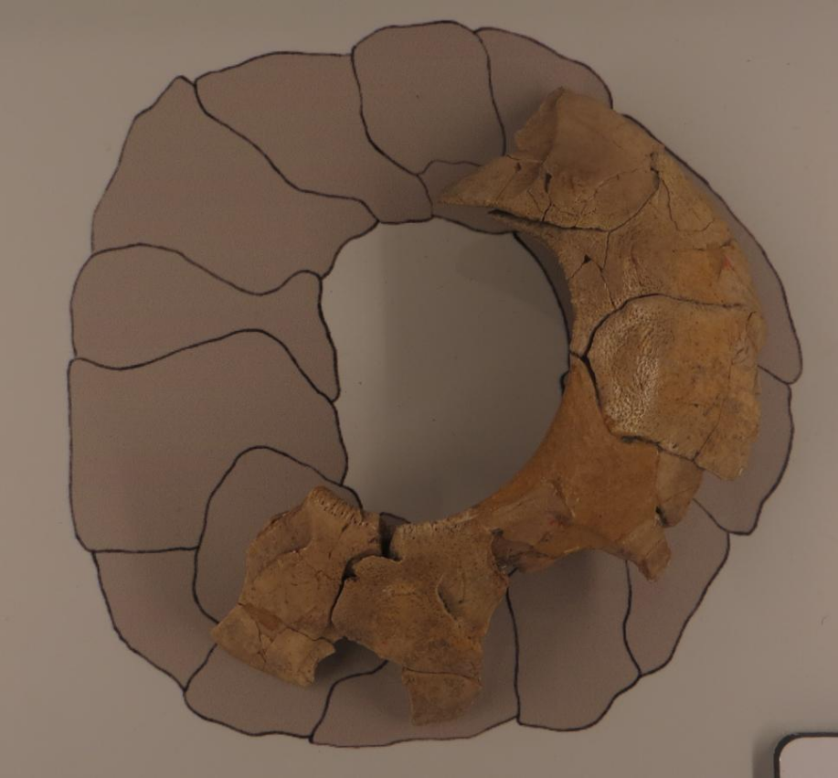 There are some M. hoffmannii jaws with evidence of infectious diseases as a result of physical injuries. Two examples include IRSNB R25 and IRSNB R27, both having fractures and other pathologies in their dentaries. IRSNB R25 preserves a complete fracture near the sixth tooth socket. Extensive amounts of bony callus almost overgrowing the tooth socket are present around the fracture along with various osteolytic cavities, abscess canals, damages to the trigeminal nerve, and inflamed erosions signifying severe bacterial infection. There are two finely ulcerated scratches on the bone callus, which may have developed as part of the healing process. IRSNB R27 has two fractures: one had almost fully healed and the other is an open fracture with nearby teeth broken off as a result. The fracture is covered with a nonunion formation of bony callus with shallow scratch marks and a large pit connected to an abscess canal. Lingham-Soliar described this pit as resembling a tooth mark from a possible attacking mosasaur. Both specimens show signs of deep bacterial infection alongside the fractures; some bacteria may have spread to nearby damaged teeth and caused tooth decay, which may have entered deeper tissue from prior post-traumatic or secondary infections. The dentaries ahead of the fractures in both specimens are in good condition, suggesting that the arteries and trigeminal nerves had not been damaged; if they were, those areas would have necrotized due to lack of blood. The dentaries' condition suggests that the species may have had an efficient process of immobilizing the fracture during healing, which helped prevent damage to vital blood vessels and nerves. This, along with signs of healing, indicates that the fractures were not imminently fatal.[90]