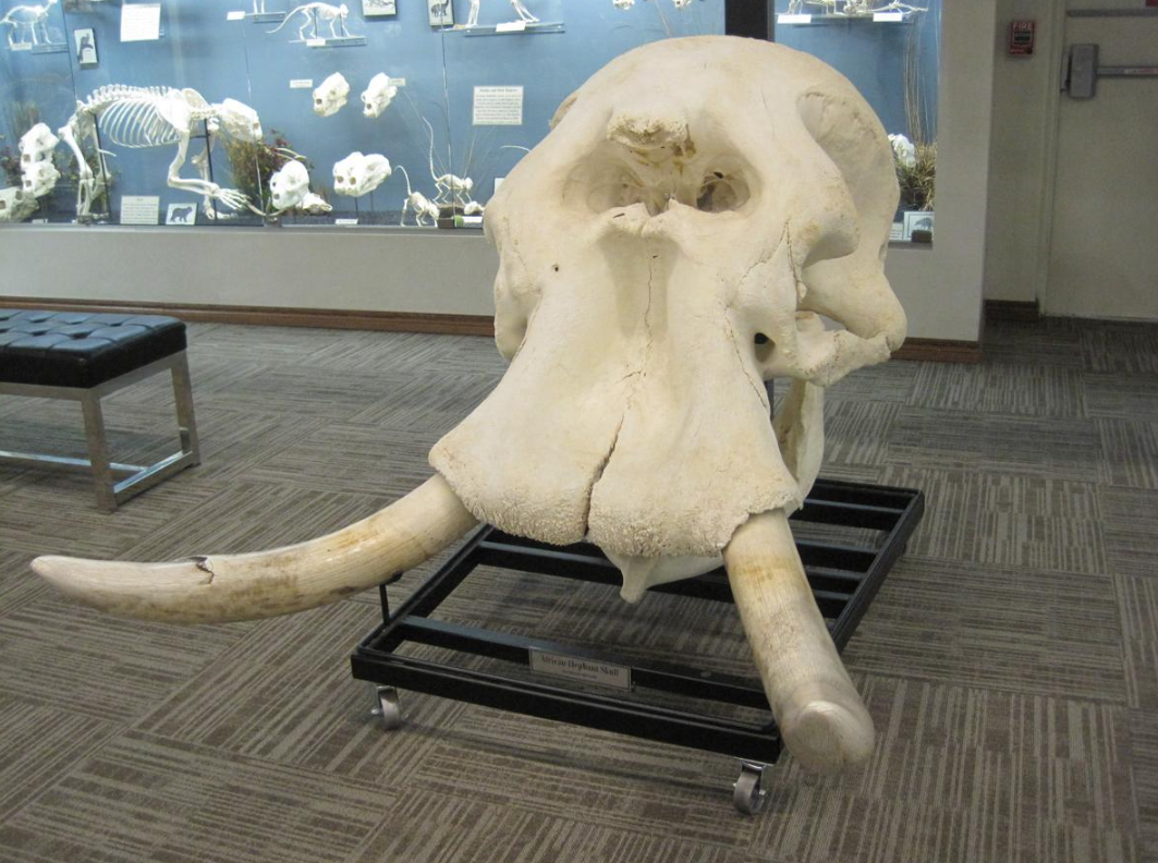 Skull of a male African bush elephant on display at the Museum of Osteology, Oklahoma City. https://handwiki.org/wiki/index.php?curid=1211216