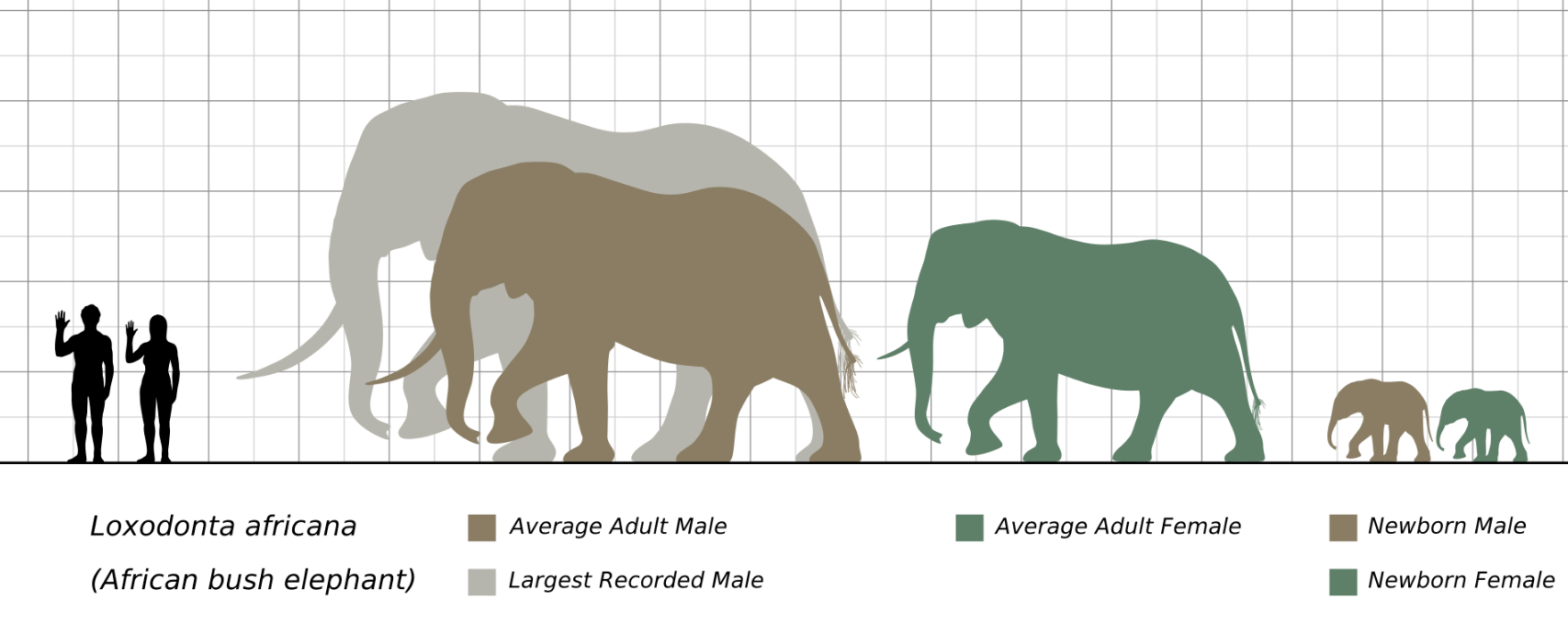 The African bush elephant is the largest and heaviest land animal on Earth, with a maximum recorded shoulder height of an adult bull of 4.00 m (13.1 ft) and an estimated weight of up to 10.6 t (11.7 short tons). On average, males are about 3.20 m (10.5 ft) tall at the shoulder and weigh 6.00 t (6.61 short tons), while females are much smaller at about 2.60 m (8.53 ft) tall at the shoulder and 3.00 t (3.31 short tons) in weight.[13][14][15][16] Elephants attain their maximum stature when they complete the fusion of long-bone epiphyses, occurring in males around the age of 40 and females around the age of 25.[13]