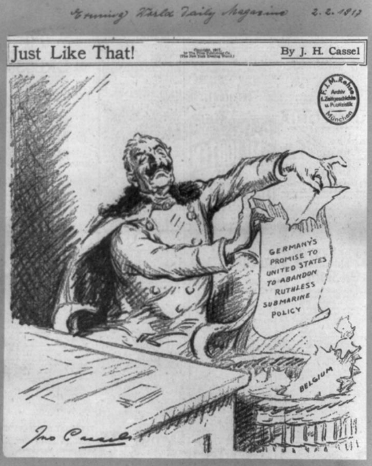On 3 February, in response to the new submarine campaign, President Wilson severed all diplomatic relations with Germany, and the US Congress declared war on 6 April.