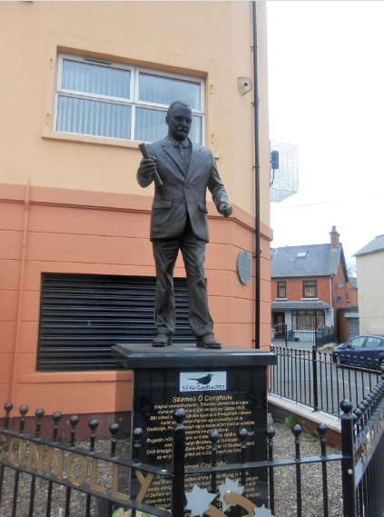 In March 2016 a statue of Connolly was unveiled by Northern Ireland minister Carál Ní Chuilín, and Connolly's great grandson, James Connolly Heron, on Falls Road in Belfast.[52]