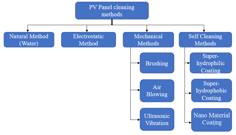 Solar photovoltaic (PV) technology has become increasingly popular over the years, as a source of renewable energy that is clean, reliable, and sustainable [4]. However, the efficiency of solar PV modules can be significantly reduced by dust deposition on the surface of the panels, which can lead to power losses of up to 20%. In this project, we will examine the effects of dust deposition on solar PV modules and explore the possibility of removing the dust without using water. However, there are many methods that can be used for cleaning solar panels. Still, we seek innovative, effective, economical, and sustainable methods that do not depend on water resources for cleaning solar panels (Figure 3).