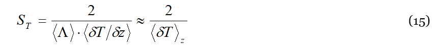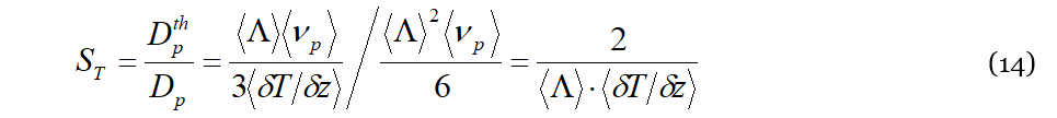 As for 𝐷𝑡ℎ𝑝, 𝑆𝑇 in Equation (15) contains its algebraic sign hidden in the term 〈𝛿𝑇/𝛿𝑧〉. A direct evaluation of 𝑆𝑇 through Equation (15) is not a simple task, of course, for this reason, dedicated numerical evaluations are in due course. However, Equation (14) contains very useful and important information about the meaning of 𝑆𝑇 in the DML framework. Recalling that 〈Λ〉 is the liquid particle drift caused by 〈𝑣𝑝〉 the collisions per second with the lattice particle, Equation (14) becomes: