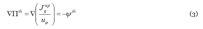 To recover from the present lack of a numerical evaluation of Equation (14), we propose here an alternative analysis of thermodiffusion, still in the DML framework, namely that of the variation of Π𝑤𝑝, or Πth, along the gradient. Besides being an energy density, 𝑞𝑤𝑝𝑇 represents in fact also the pressure Πwp exerted by elastic wave-packets on the liquid particles. Compiling Equation (4) with Equations (9) and (10) we get: