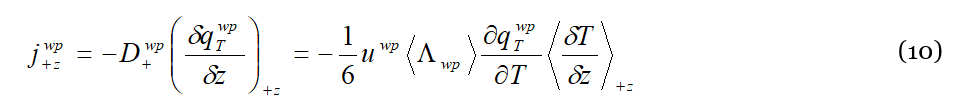 We now have all the ingredients to calculate the flux of solute (or solvent) molecules 𝐽𝑚 due to the collisions with phonons in the presence of an external temperature gradient. If all solute particles have mass 𝑚𝑝 and their density is 𝑁𝑝, we have: