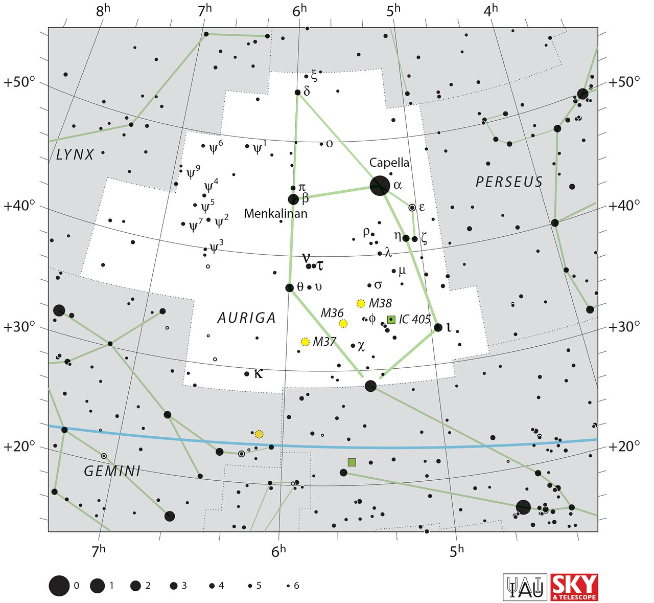 Figure 1. IAU chart of Auriga. Source: https://www.iau.org/static/archives/images/screen/aur.jpg. Credit: IAU and Sky & Telescope. Reproduced under CC BY 4.0 license.