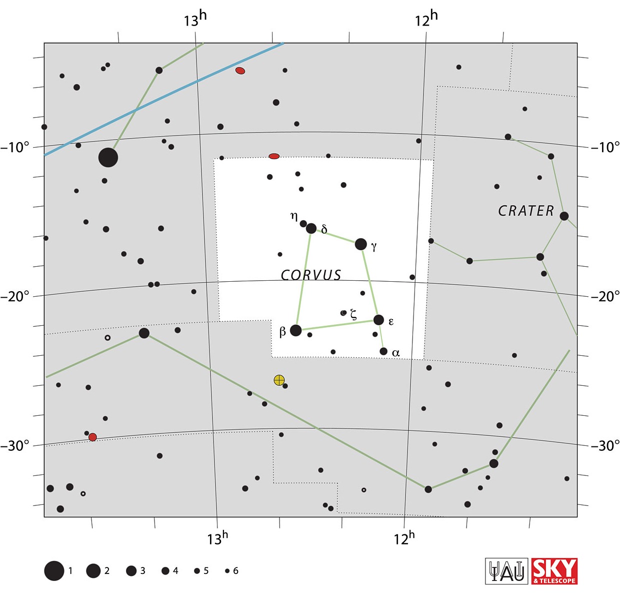 Figure 1. IAU chart of Corvus. Source: https://www.iau.org/static/archives/images/screen/crv.jpg. Credit: IAU and Sky & Telescope. Reproduced under CC BY 4.0 license.
