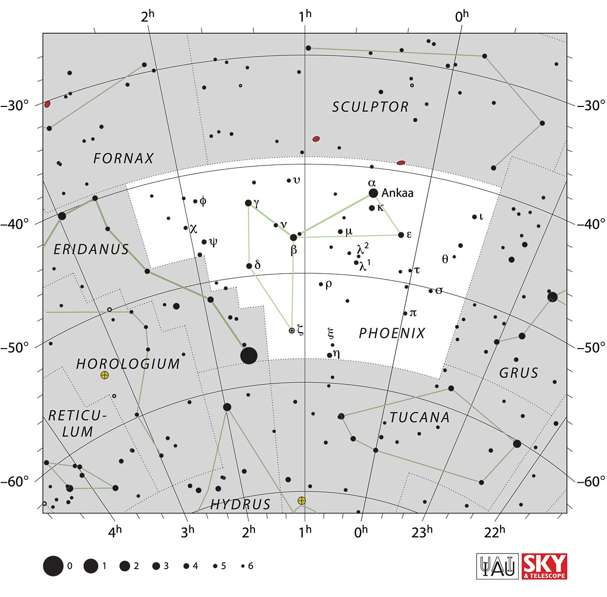 Figure 1. IAU chart of Phoenix. Source: https://www.iau.org/static/archives/images/screen/phe.jpg. Credit: IAU and Sky & Telescope. Reproduced under CC BY 4.0 license.