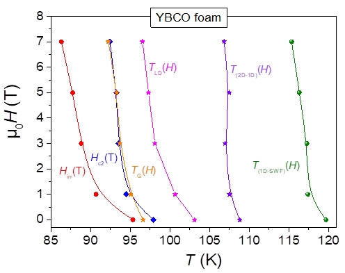 Table 3. Excess conductivity results (TG, TLD, T(2D−1D) and T(1D−SWF)) analyzed at different applied magnetic fields for the YBCO foam sample.