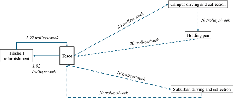 Figure 2. Number of trolleys collected per week for each driving scenario, centered on the originating supermarket “Tesco".