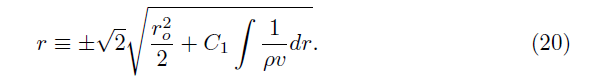 being r0 the initial condition chosen as r0 = RS, and, therefore v0 ≡ v(r0) and ρ0 ≡ ρ(r0) the suitable integration constant. The choice of the initial condition on r0 is equivalent as imposing the gravitational torque.