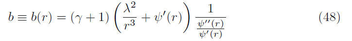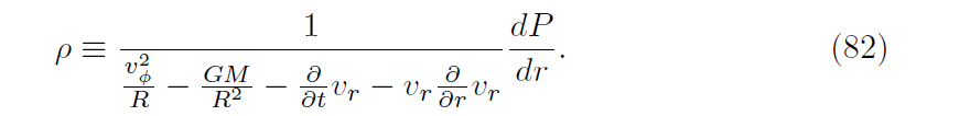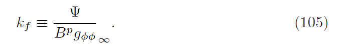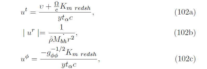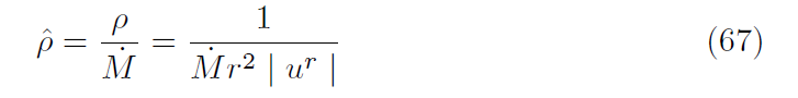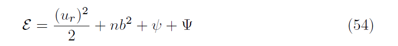 where the enthalpy y is taken from Eq. (62), the mass density ˆρ is recalled from Eq. (67), Km redsh is the specific redshifted mechanical angular momentum, υ is the specific redshifted mechanical energy of the plasma, and ![]()