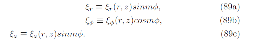 Azimuthal perturbations The azimuthal perturbations are written for the displacements of the equilibrium position ξ as