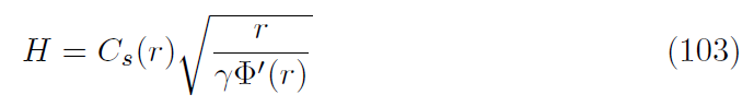 which corresponds to a speed of sound Cs is calculated after the temperature T from Eq. (98) in the Keplerian case from the vertical scale H of the shape of the Keplerian object as from [18].