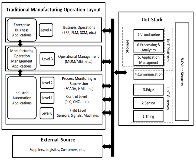 Figure 9. Manufacturing operation levels and IIoT integration architecture. (Author’s creation).
