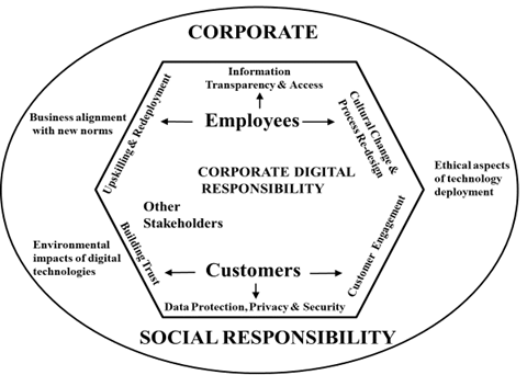 As the digital era advances, many industries continue to expand their use of digital technologies to support company operations, notably at the customer interface, bringing new commercial opportunities and increased efficiencies. New sets of responsibilities associated with the deployment of these technologies are emerging, encompassed within the concept of corporate digital responsibility (CDR). The scope of CDR is wide-ranging and overlaps with the other dimensions of corporate social responsibility (CSR), having social, economic, ethical, and environmental—as well as technological components.
