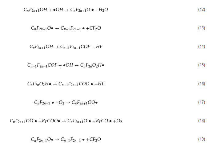 +), have been identified as dominant ROS that contribute individually or synergistically to the defluorination and destruction of PFASs through advanced oxidation
