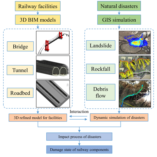 Figure 4. of BIM+GIS with new technologies for coupled responses of railway components to disasters.