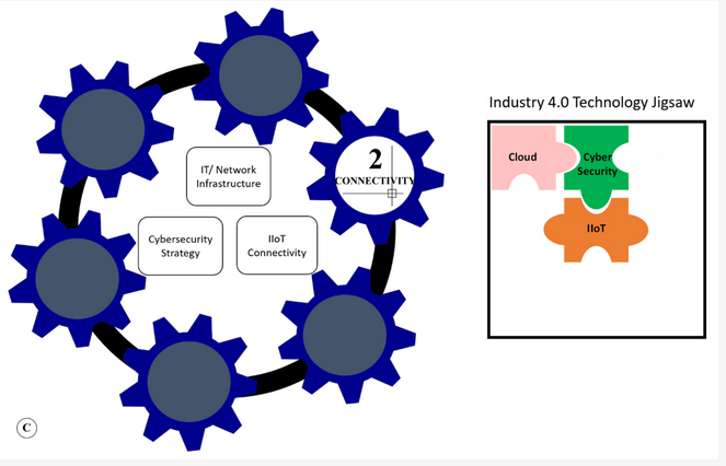 A case study presented an example of an industrial collaboration to address factory level network connectivity and cybersecurity of an IIoT system; known as the iSMART factory concept [61][42][32,52]. This collaboration was between global machine equipment manufacturers “Yamazaki Mazak” and the IT giants “Cisco” teaming up together to connect machines securely via MT-Connect protocols and Industrial IT switches embedded with network security to help prevent any issues with unauthorized access to or from the machines and equipment within the network.
