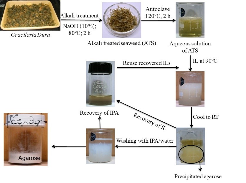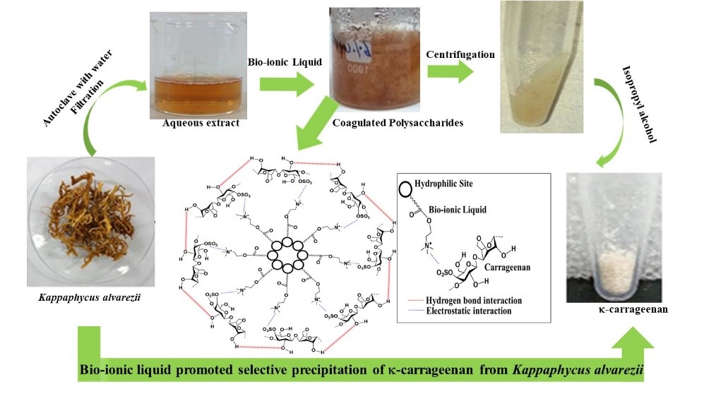 Figure 8. Extraction of carrageenan from Kappaphycus alvarezii using ionic liquids. [Permission from Publisher]