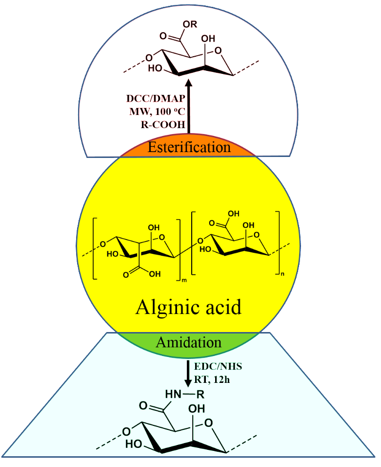 Figure 4. Derivatization of alginic acid via esterification and reactions.