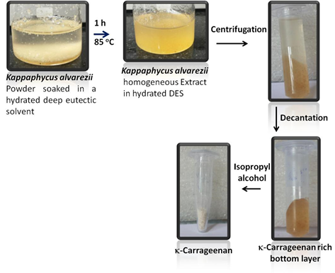 Figure 9. Extraction of carrageenan from Kappaphycus alvarezii using Deep eutectic solvents. [Permission from Publisher]
