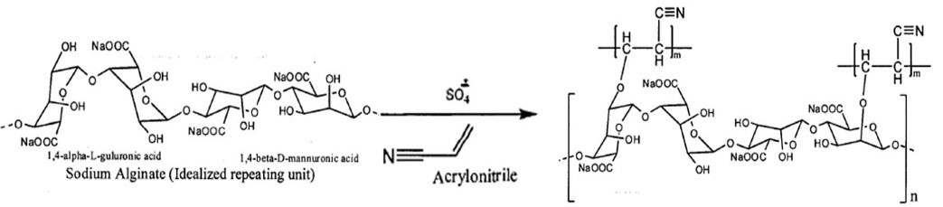 Figure 6. Grafting copolymerisation reaction of sodium alginate with acrylonitrile.