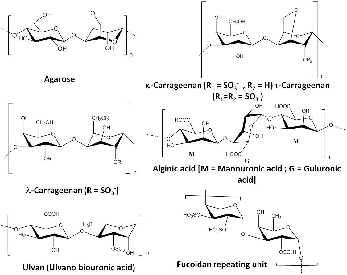 The source of certain seaweed polysaccharides and their chemical structure is depicted in Table 1 and Figure 1 respectively.