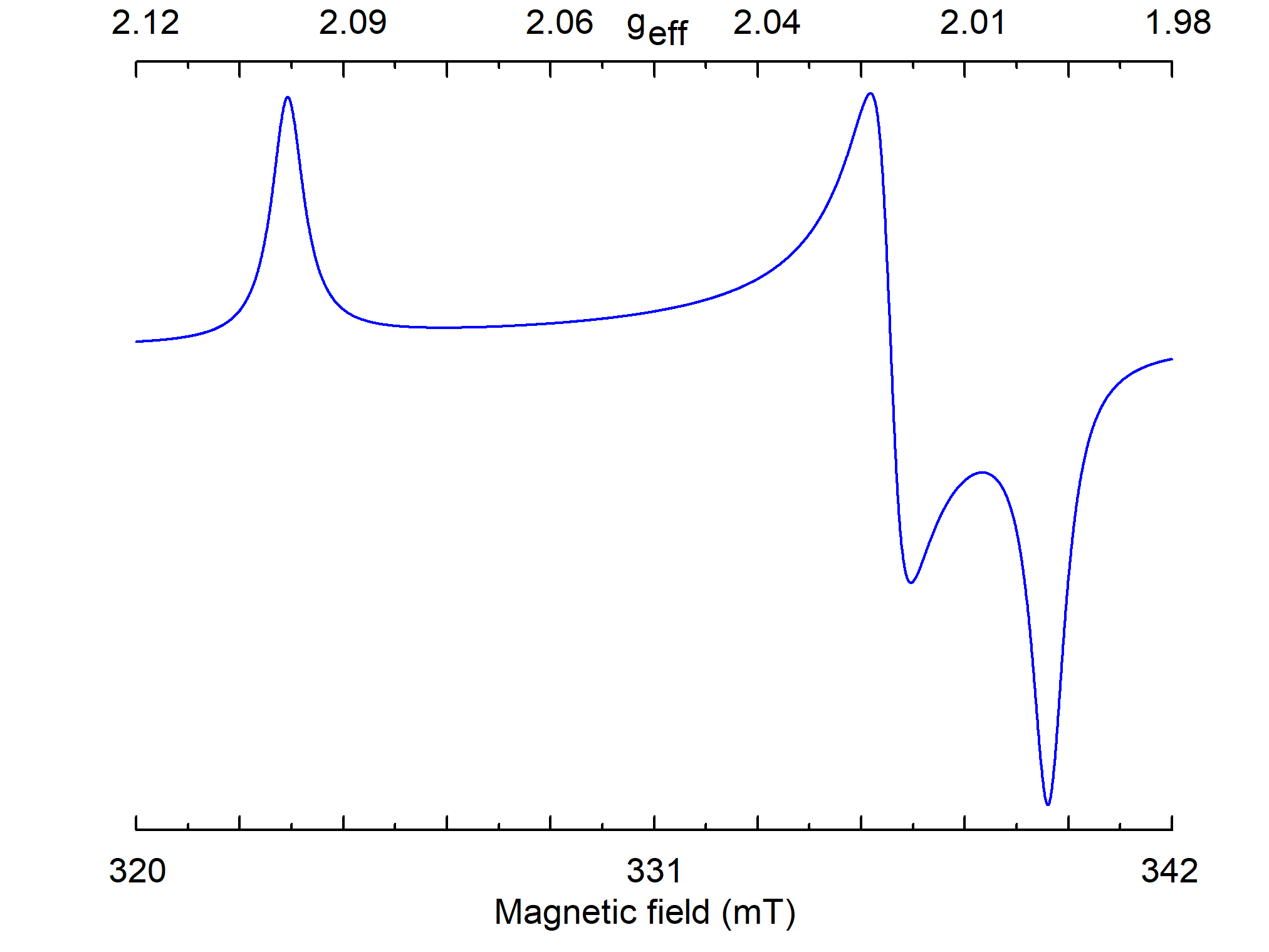 Powder samples consist of a large number of small randomly oriented crystallites. Therefore, their EPR spectrum is a sum of many spectra. Simulation of a powder sample spectrum supposes an integration of the magnetic resonance spectrum, calculated at the definite orientation of magnetic field