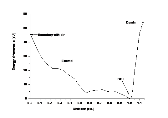 Energetic profile of whole enamel, DEJ and fragment of dentin.
