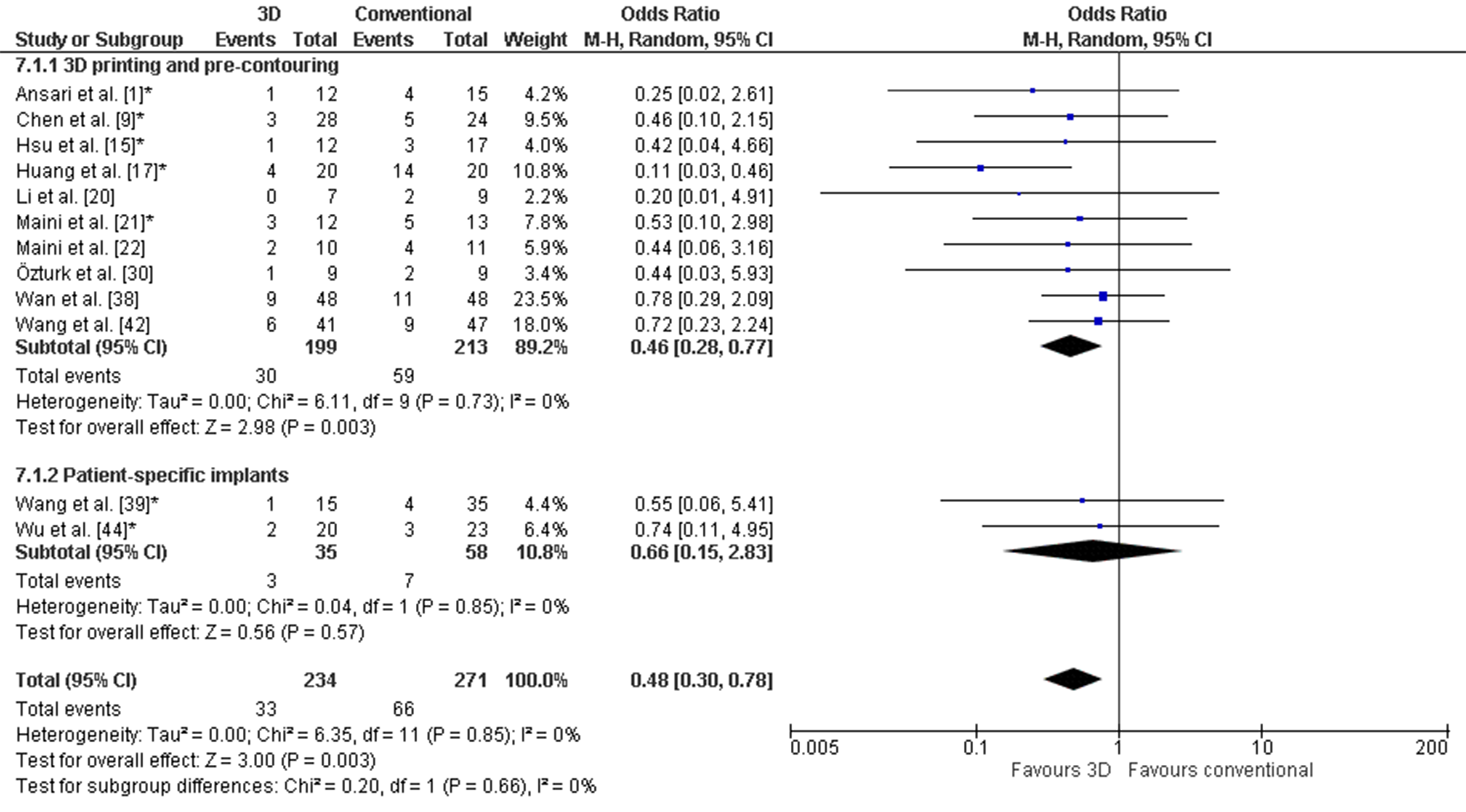 | Wan et al. [46] | 2019 | China | Case control | 96 | January 2016–June 2017 | Operation time, intraoperative blood loss, intraoperative fluoroscopy usage, postoperative fracture reduction, complications, FU: Harris hip score | 3D printing and plate pre-contouring |
