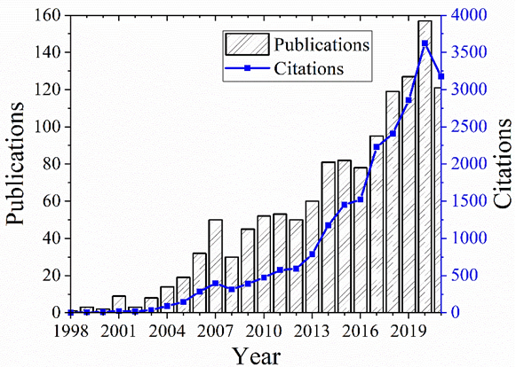 Number of publications on cold spray technology and their citations per year (until August 2021; Scopus database).