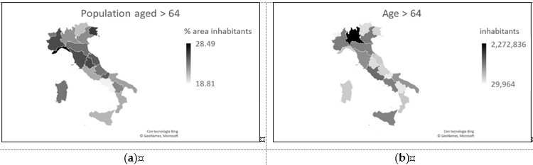 The statistics on the age of the population in Italy and in the rest of the world are in line with the spread of COVID-19, which is lower in countries where the average age is lower (e.g., Africa) [33,35]. A different trend is found only in South Asia, where the spread is high compared to Europe [4], despite the average age of the Asian population being lower than that of the European population [33]. However, the death rate in Asia is lower than in Europe [4].
