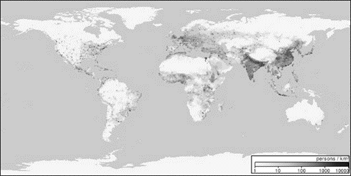 Considering the population density in the world, the highest values are recorded in Europe and Asia. The areas of the world with the lowest population density are Russia, Canada, and some African states (Figure 9) [33,34].