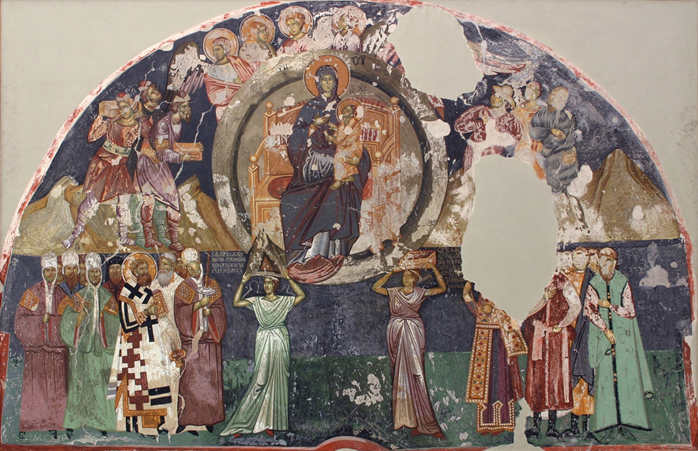 Figure 7. King Milutin fresco, 1321. Church of the Presentation of the Virgin, Monastery of Chilandar, southwest corner of the nave. Courtesy Gallery of Frescoes, Belgrade.