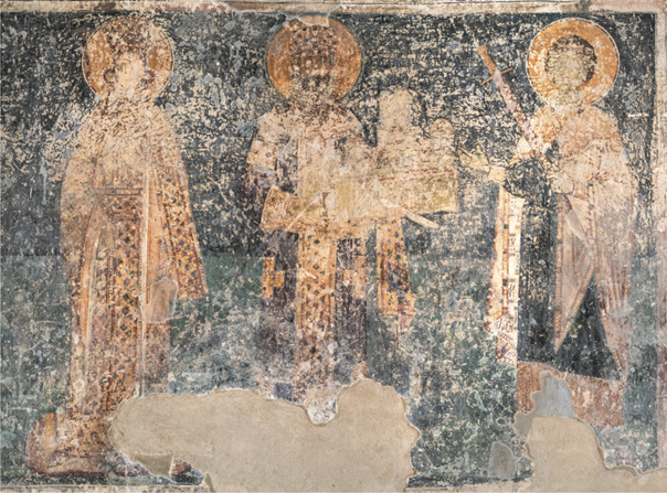 Figure 3. King Milutin with the church, fresco, 1317–1318. Church of St. George Tropaioforos, Monastery of Staro Nagoričino, north wall of the narthex. Photo Bojan Popović.