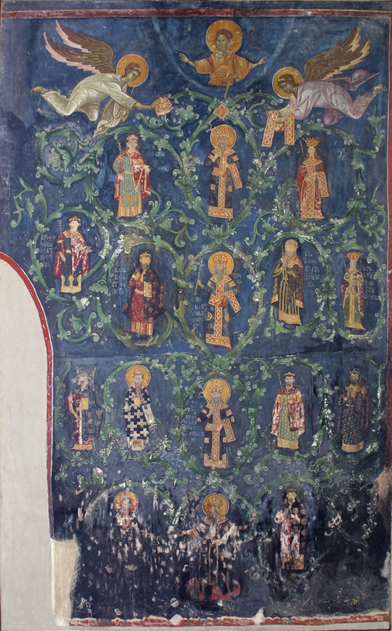 Figure 6. Nemanide’s Genealogical Tree, fresco, 1321. Church of Annunciation, Monastery of Gračanica, south part of the eastern wall of the narthex. Courtesy Gallery of Frescoes, Belgrade.