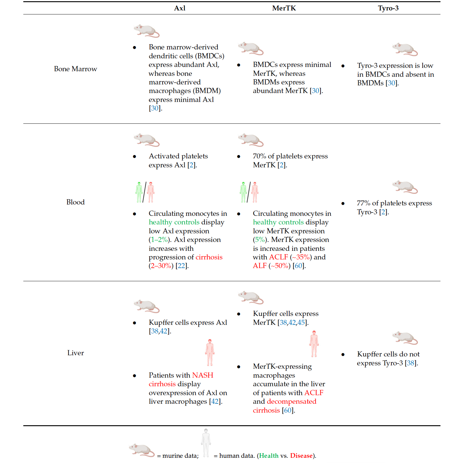 Table 1. TAM receptor expression in myeloid cell subsets in liver and extrahepatic compartments.