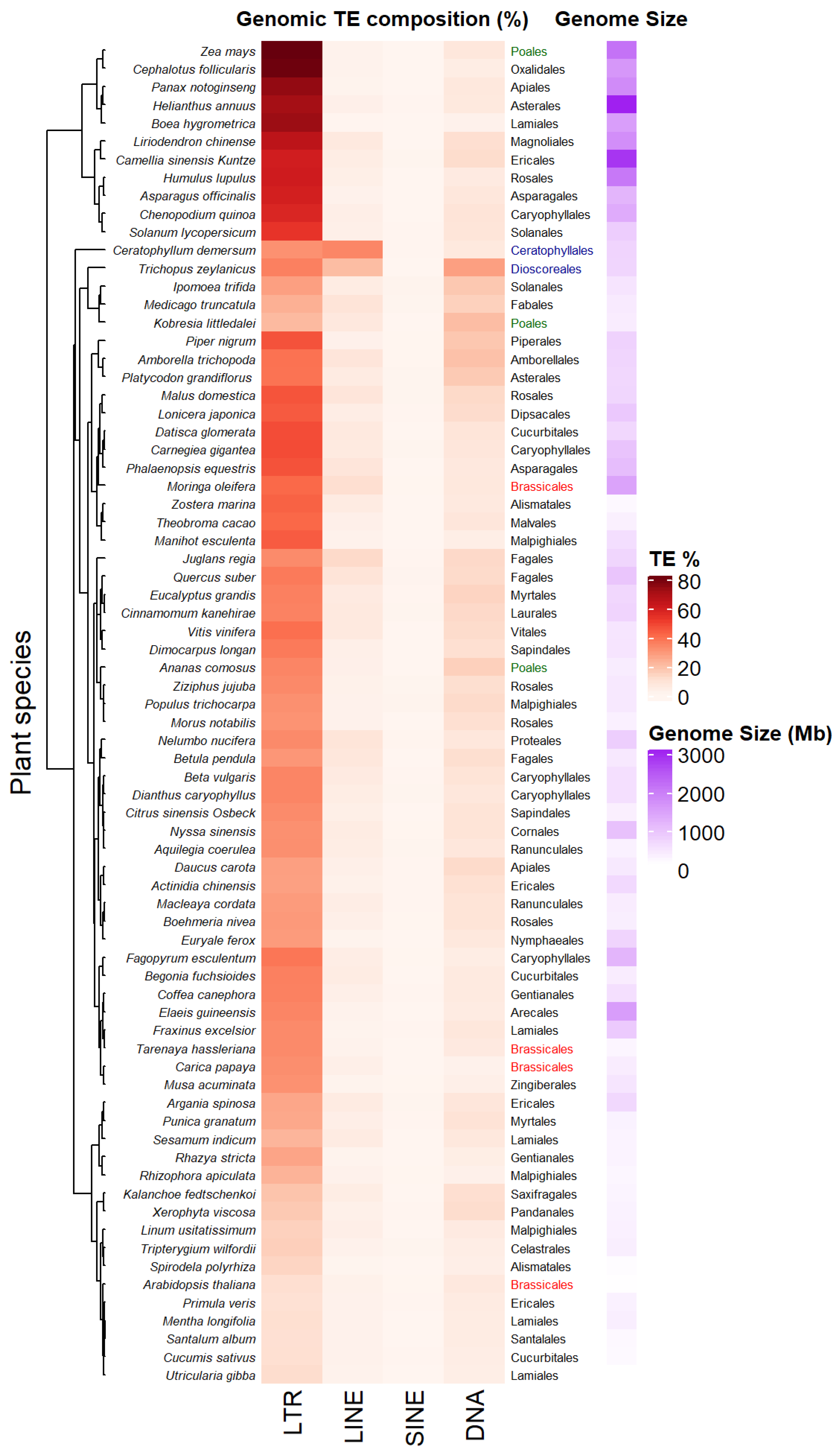 Transposable elements (TEs) are important components of most plant genomes. These mobile repetitive sequences are highly diverse in terms of abundance, structure, transposition mechanisms, activity and insertion specificities across plant species.