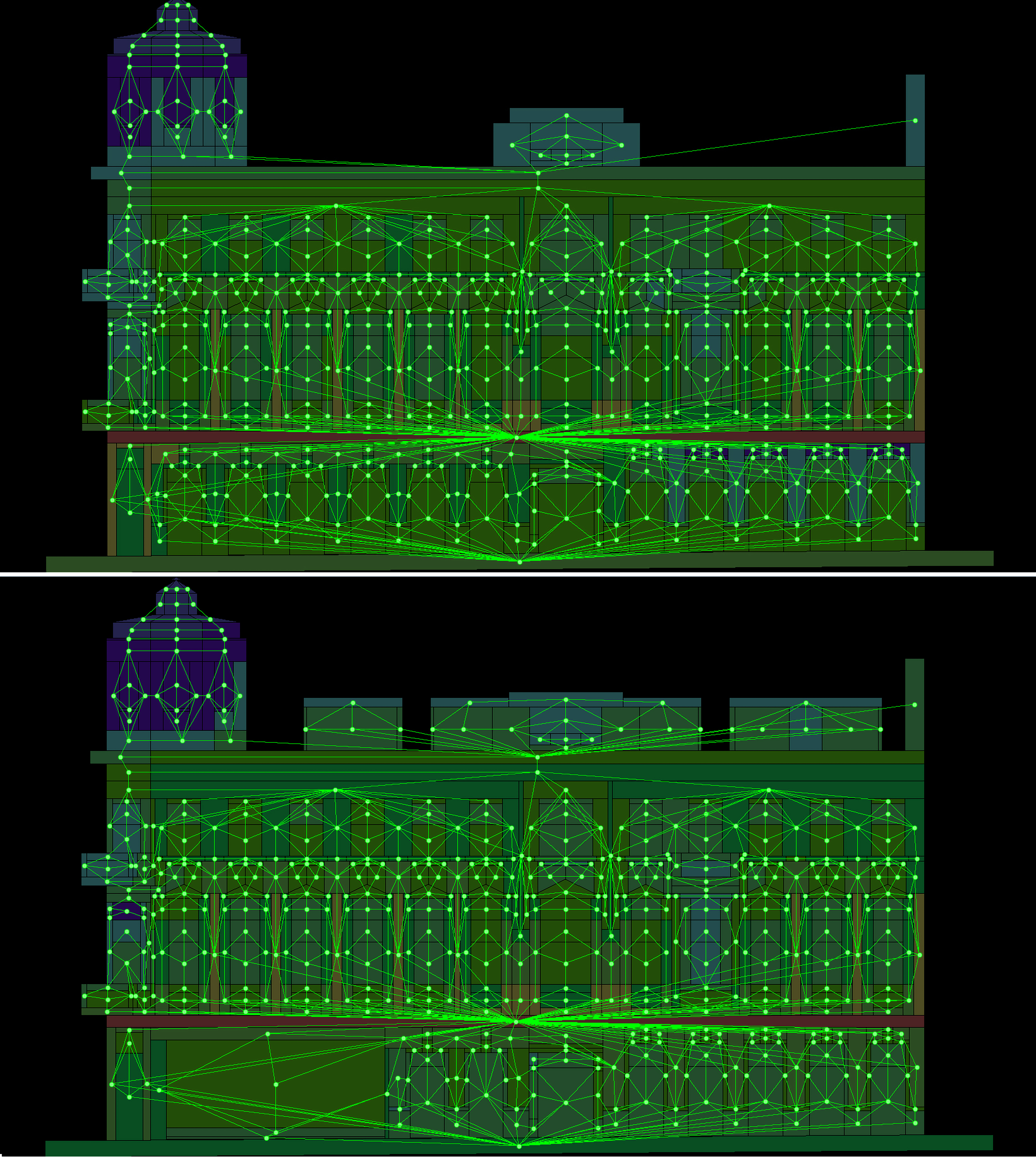 Figure 1.Fig. 1. Convex graph of the facades of the same building before and after renovation. Each element of the façade becomes a node of the graph; if two nodes have common boundary then they are connected by common edge of the graph.