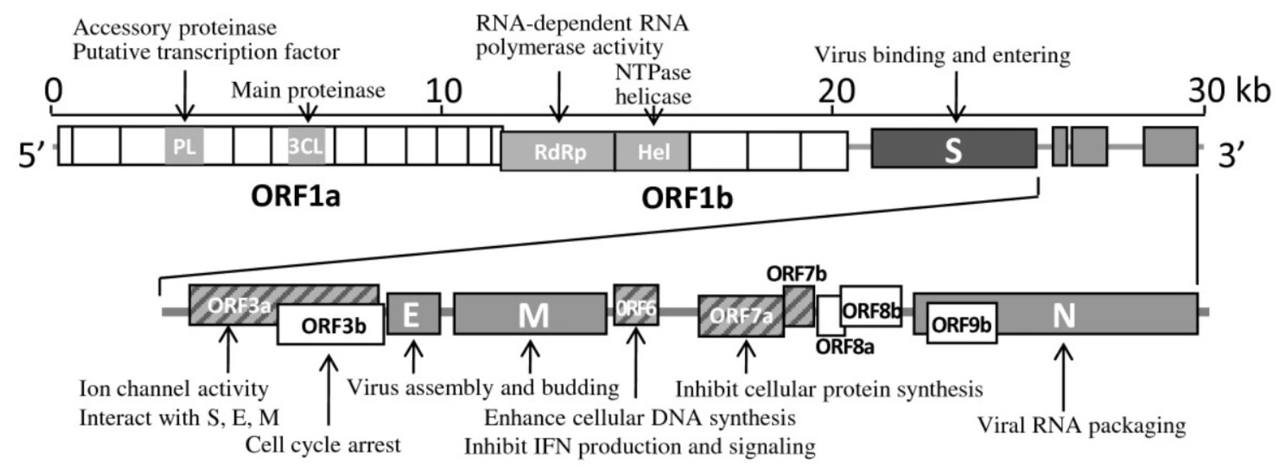 Table 1. Function of SARS-CoV genome proteins (orf1a to orf9b)