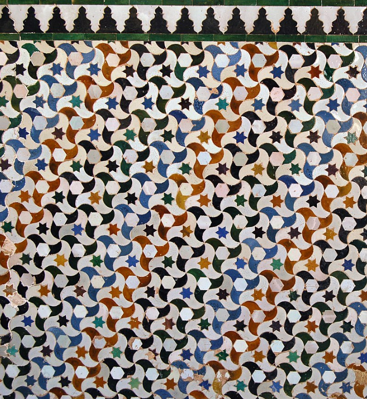 Classic motif and colors of the 14th century in the Alhambra. By gema de la fuente - La Alhambra, CC BY-SA 2.0, https://commons.wikimedia.org/w/index.php?curid=21857441