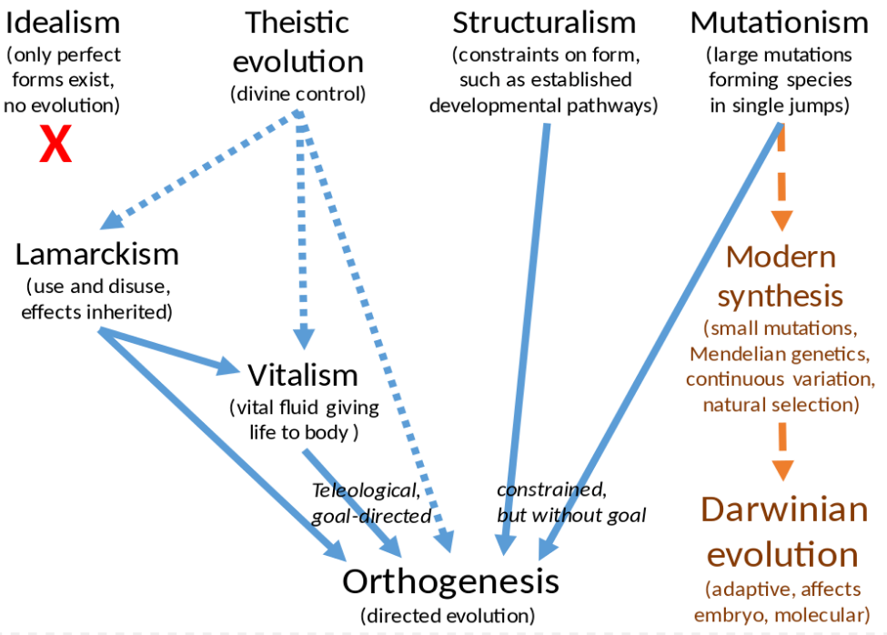 | Orthogenesis[24] | 1859 | Baer, Karl von | Yes | "Purposeful creation" | No | Yes? | Many variants in 19th and 20th centuries |