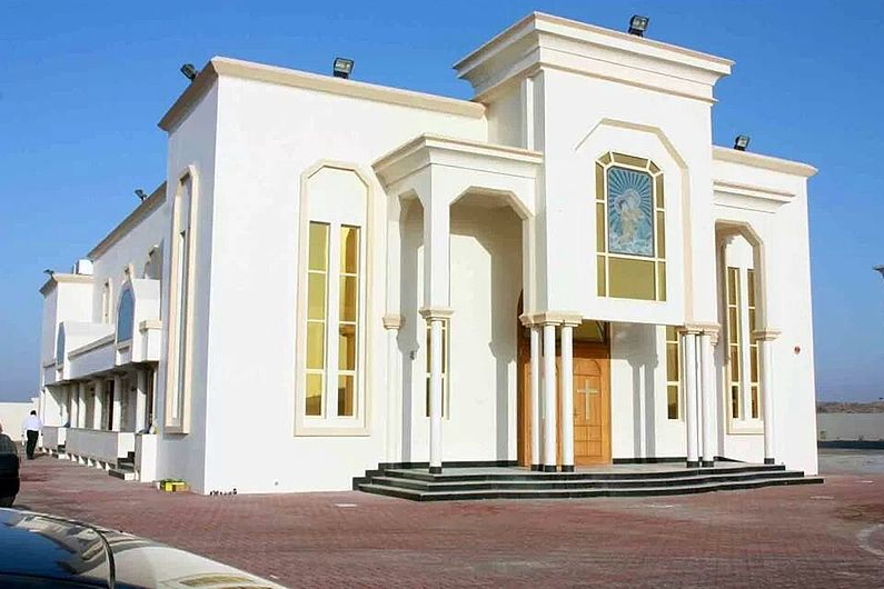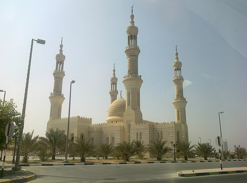 Sheikh Zayed Mosque and St Mary's Orthodox Church. By Fadi Fayad Al Taoba, CC BY 3.0, https://commons.wikimedia.org/w/index.php?curid=53139530. By Josephvarghese2005 - Own work, CC BY-SA 4.0, https://commons.wikimedia.org/w/index.php?curid=50412384The UAE culture mainly revolves around the religion of Islam and traditional Arab culture. The influence of Islamic and Arab culture on its architecture, music, attire, cuisine and lifestyle are very prominent as well. Five times every day, Muslims are called to prayer from the minarets of mosques which are scattered around the country. Since 2006, the weekend has been Friday-Saturday, as a compromise between Friday's holiness to Muslims and the Western weekend of Saturday-Sunday.[52] A great majority of the population are non national citizens, coming from India, Pakistan, and a wide range of nations.