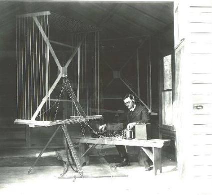 W.G. Wade of the National Bureau of Standards uses a large multi-loop antenna to perform RDF in this 1919 photo. This is a fairly small unit for the era.